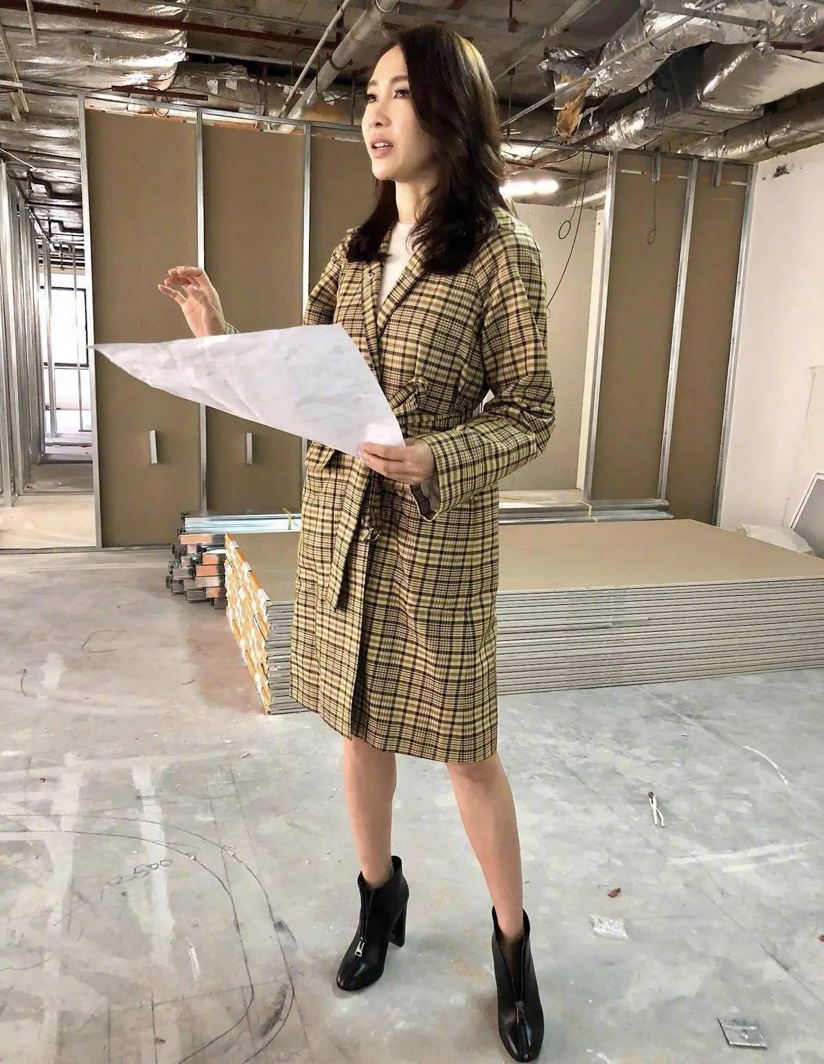 黎姿挑选了黄色格纹大衣,该格纹图案极具时尚大方之感,黄色明度颇高、甚是鲜亮,映衬得整个人简直明眸皓齿、明艳动人,带该小翻领的设计,颇显大方,腰间有系带设计,尽显甜美可爱态势,白色内搭与外搭的颜色颇为相称,内搭选了圆领设计,将脖子曲线展露无遗,很是突现气质,外搭之下摆宽松,使纤细笔直的双腿得以露出,相当美观,最终搭配了黑色高跟短靴,能修饰腿型,让腿部线条无比优美好看,短靴乃秋冬季节必备的时尚单品,小仙女们可要加以思量屯聚不同款式的短靴,如此可助你搭配出各异风格 。